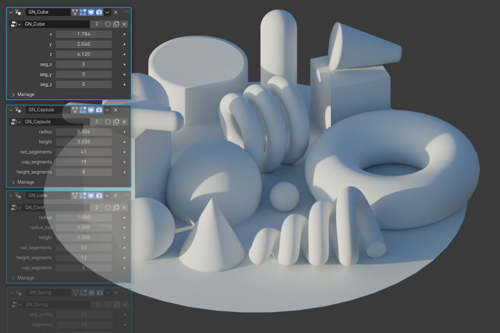 Blender is missing Parametric Primitives, like we have in other applications like C4D and Maya.
